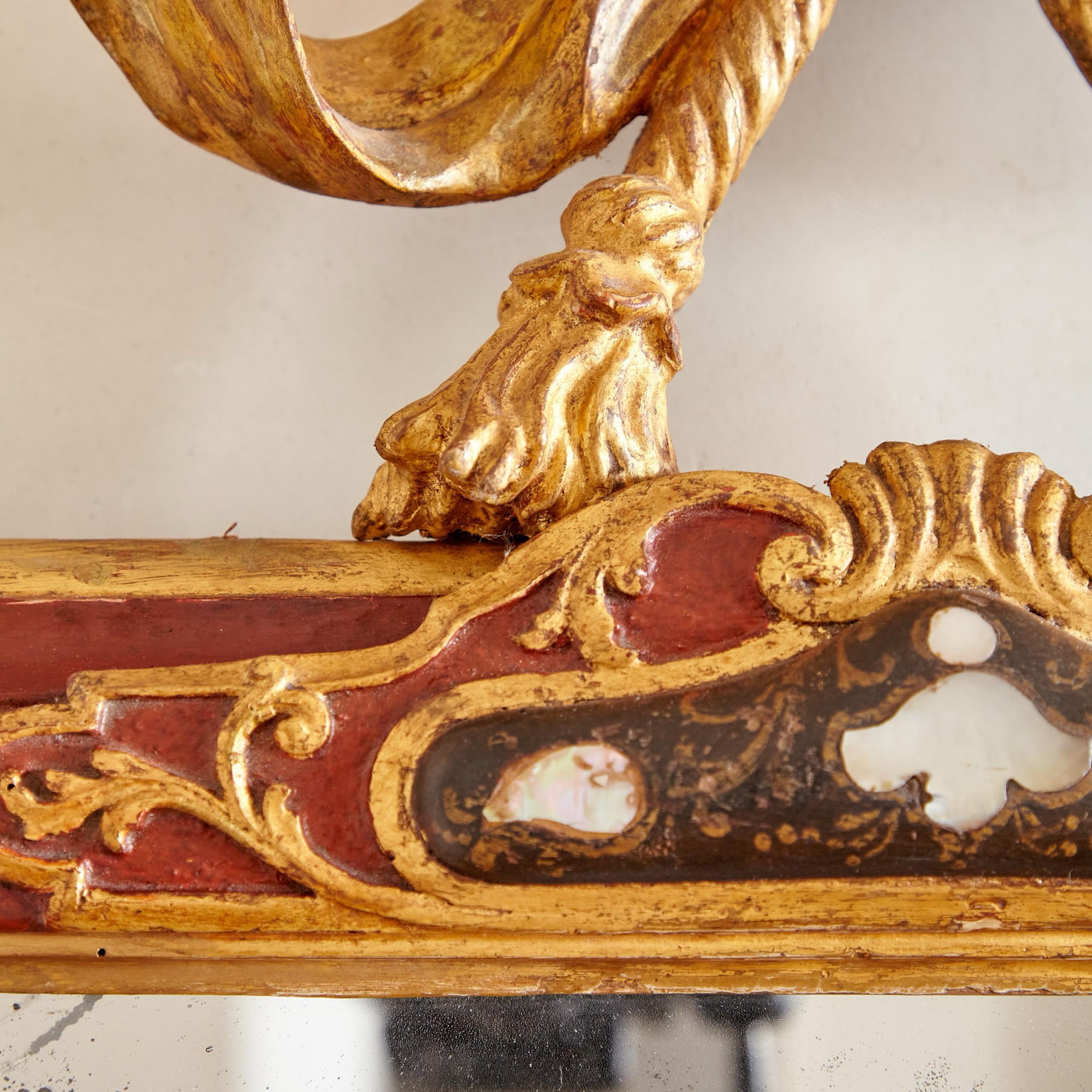 An 18th century carved parcel-gilt and red lacquered Venetian mirror