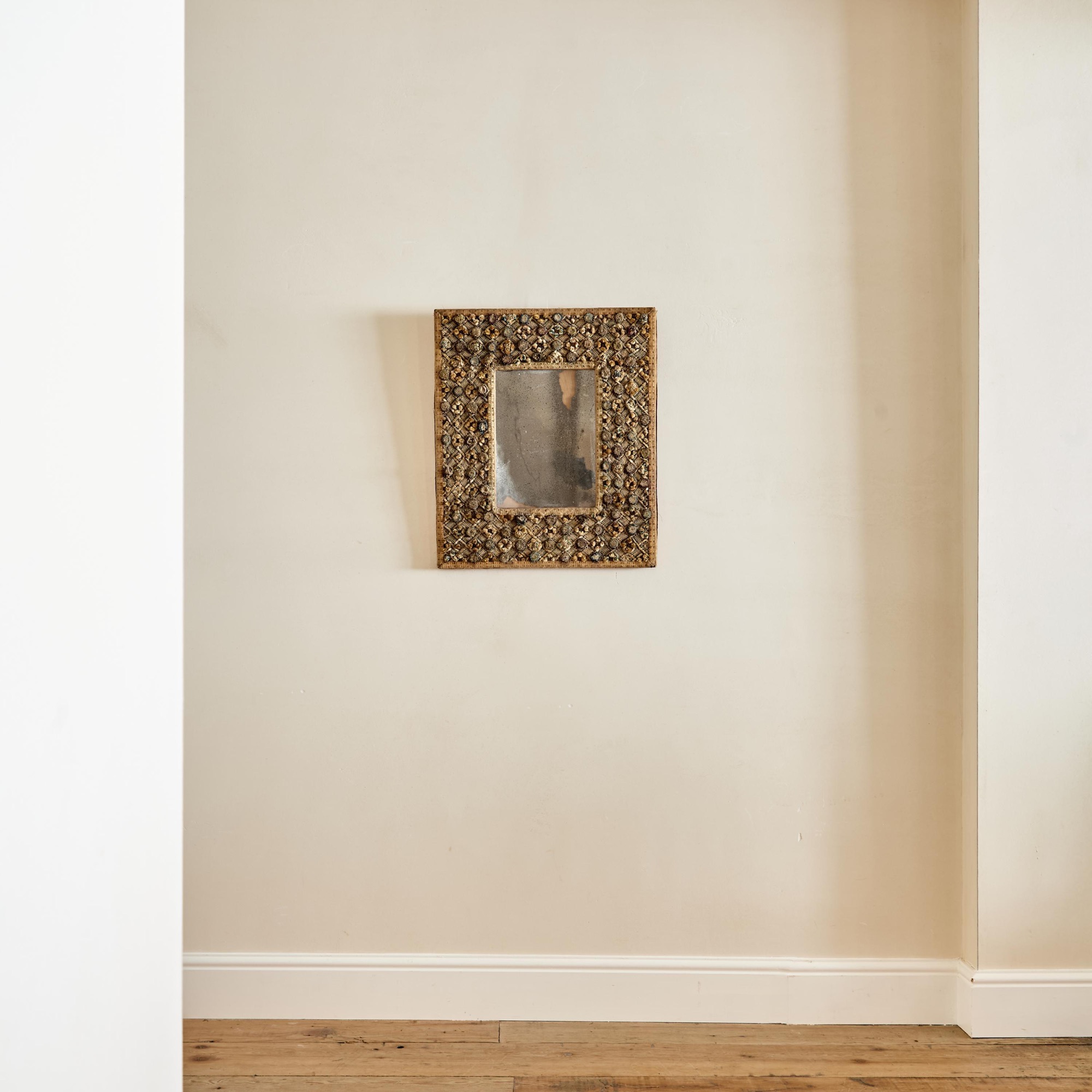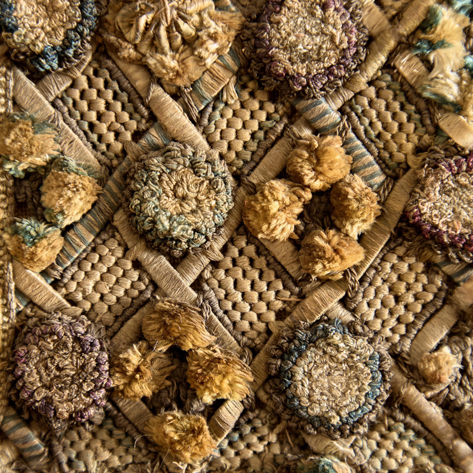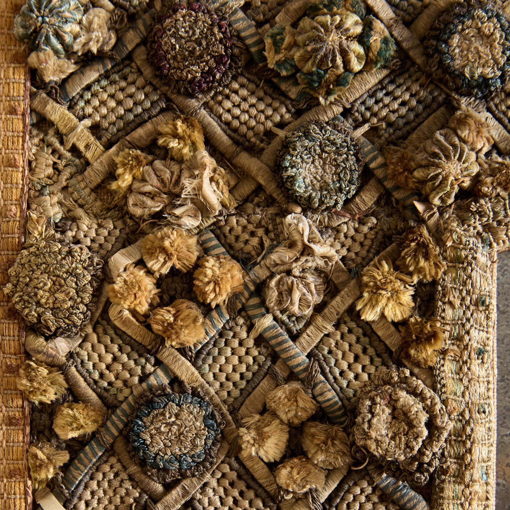 A Charles II embroidered wool and raised work framed mirror