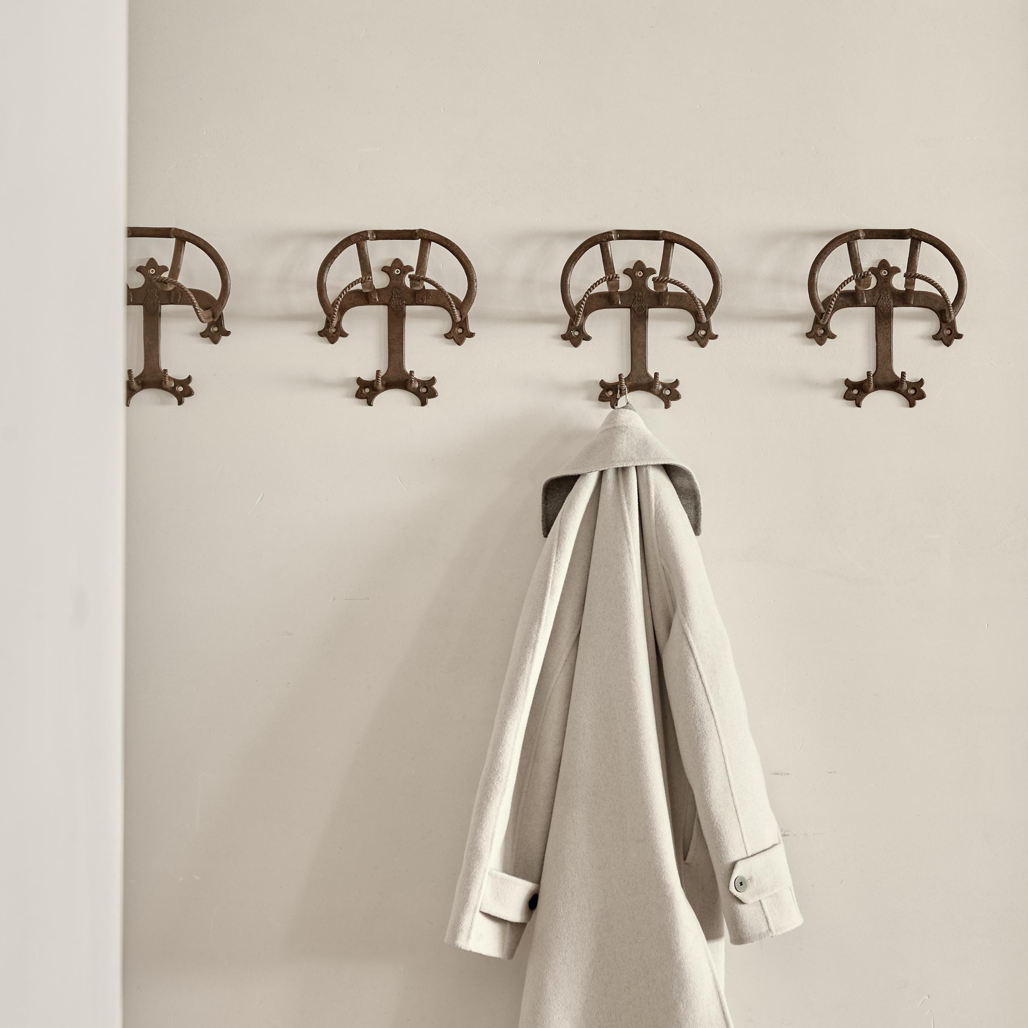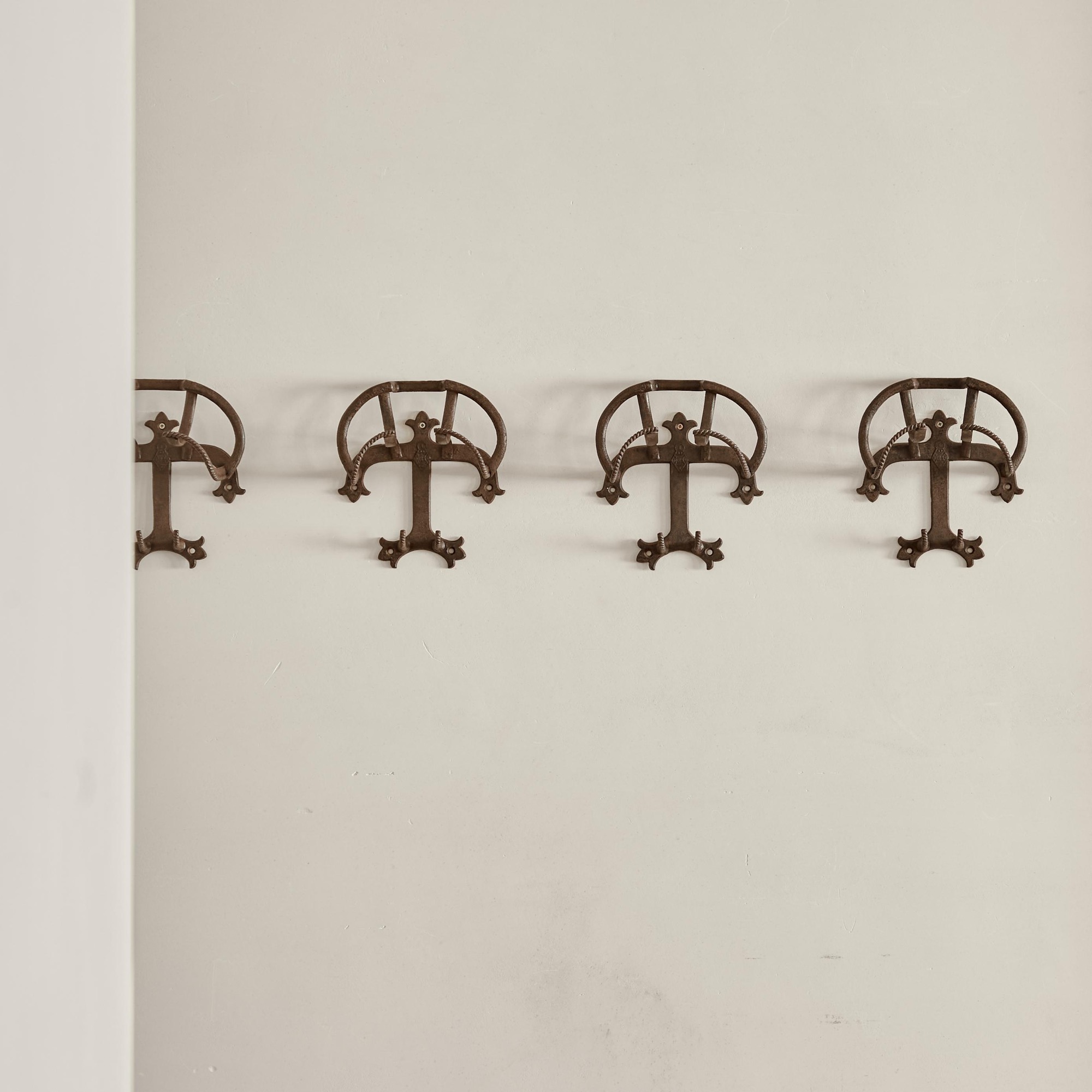 - A collection of seven patinated wrought iron bridle hooks originally from Middleton Park, Oxfordshire