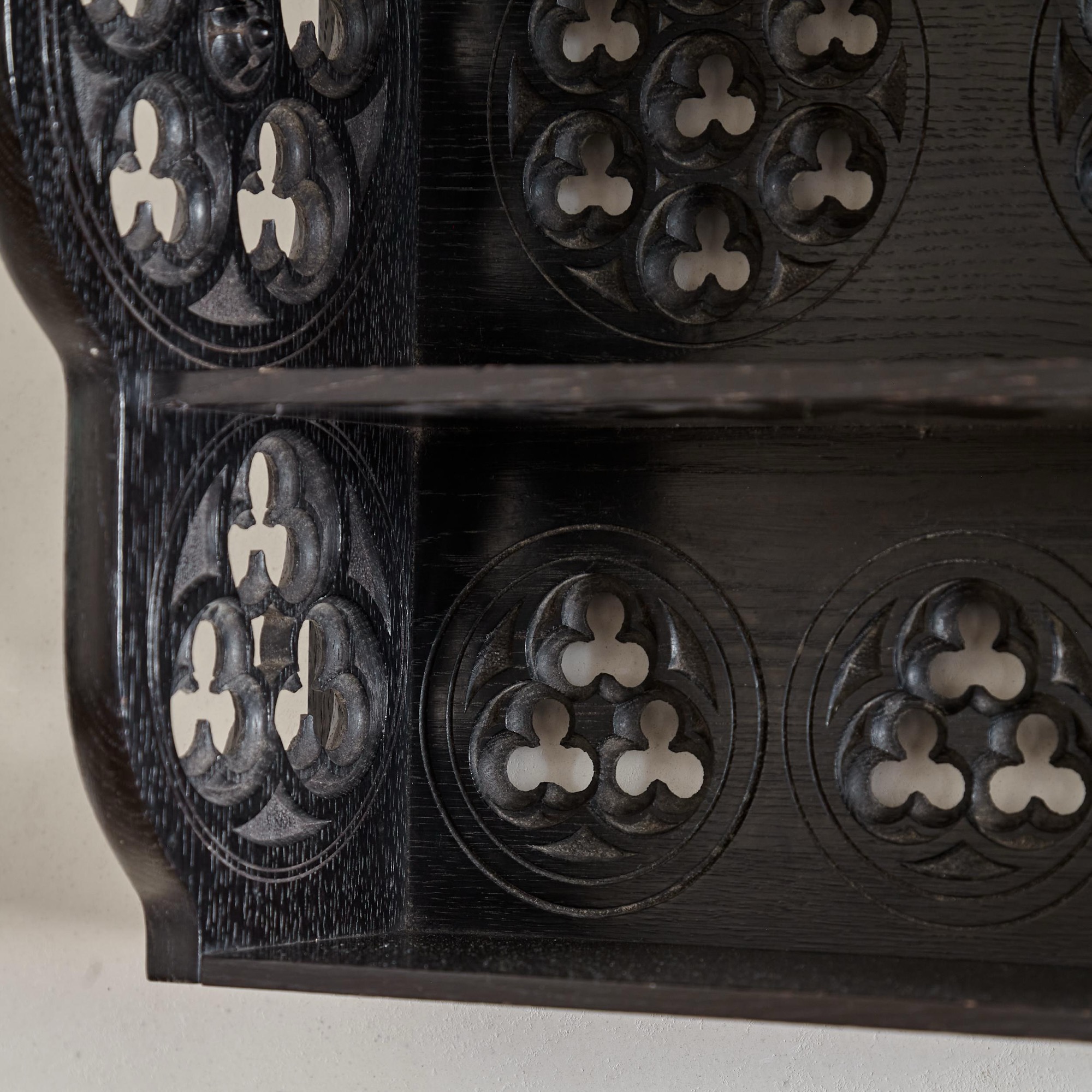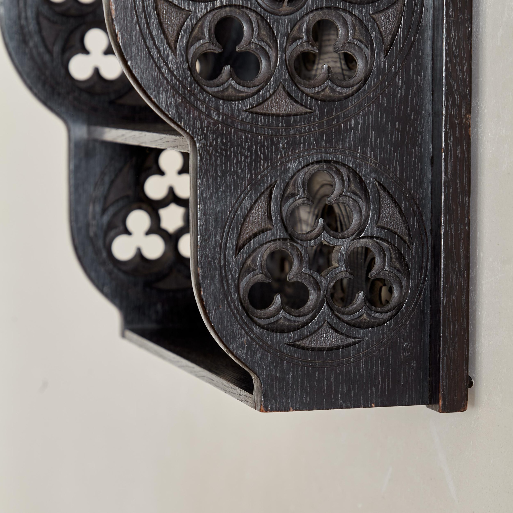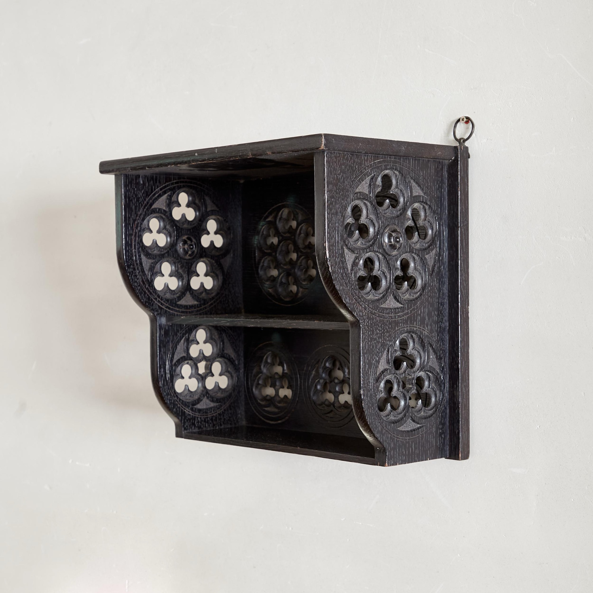 A small Gothic Revival ebonised oak hanging shelf