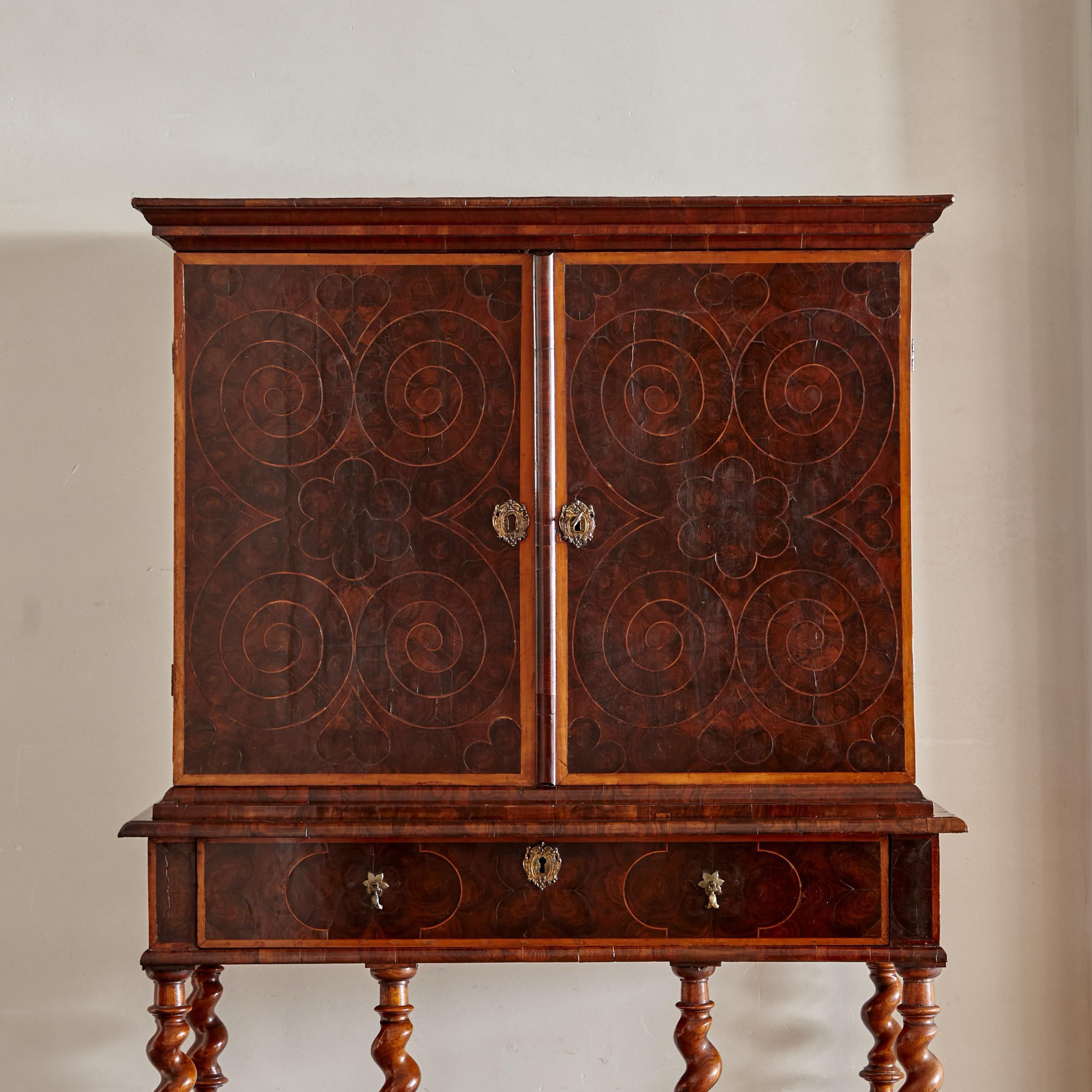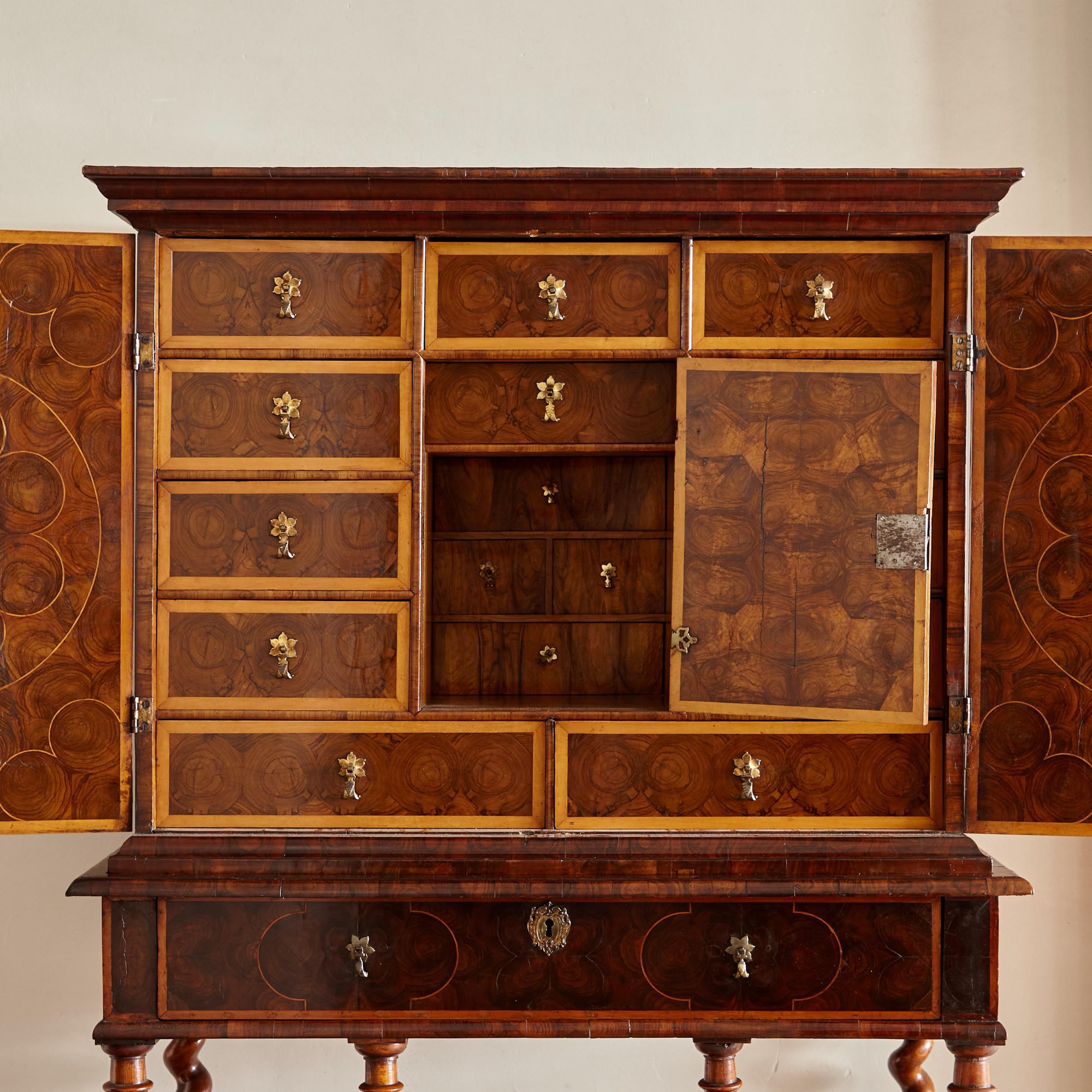 A fine William and Mary olivewood oyster veneered cabinet on stand