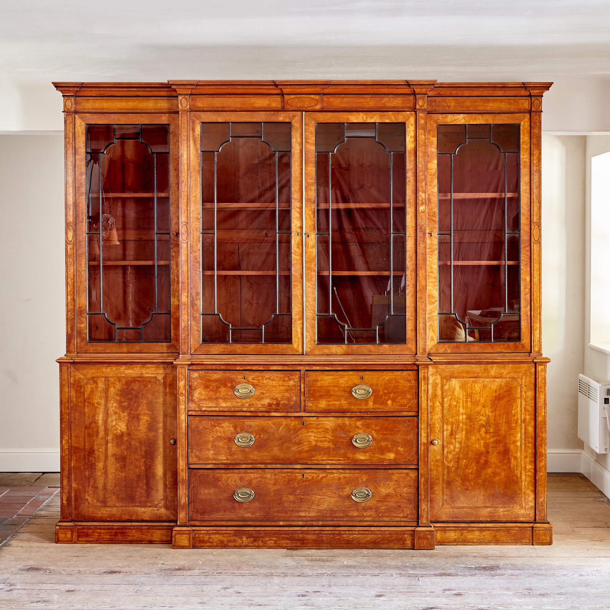 A large George III Hepplewhite period satinwood breakfront cabinet