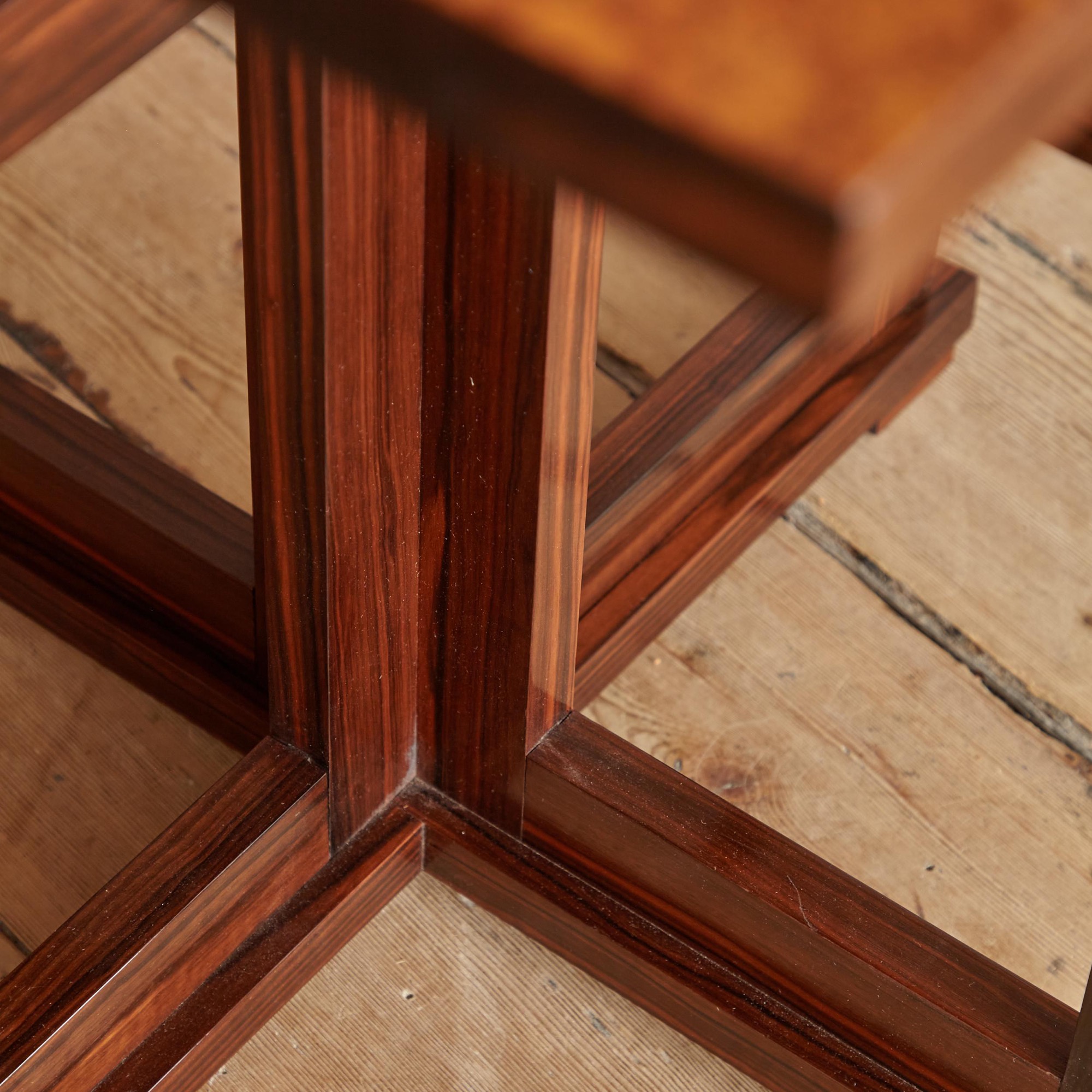 An Art Deco burr amboyna and macassar ebony square centre table attributed to Francis Jourdain (1876 - 1958)