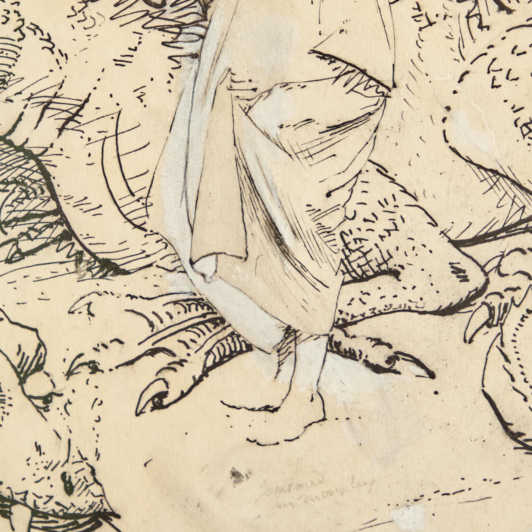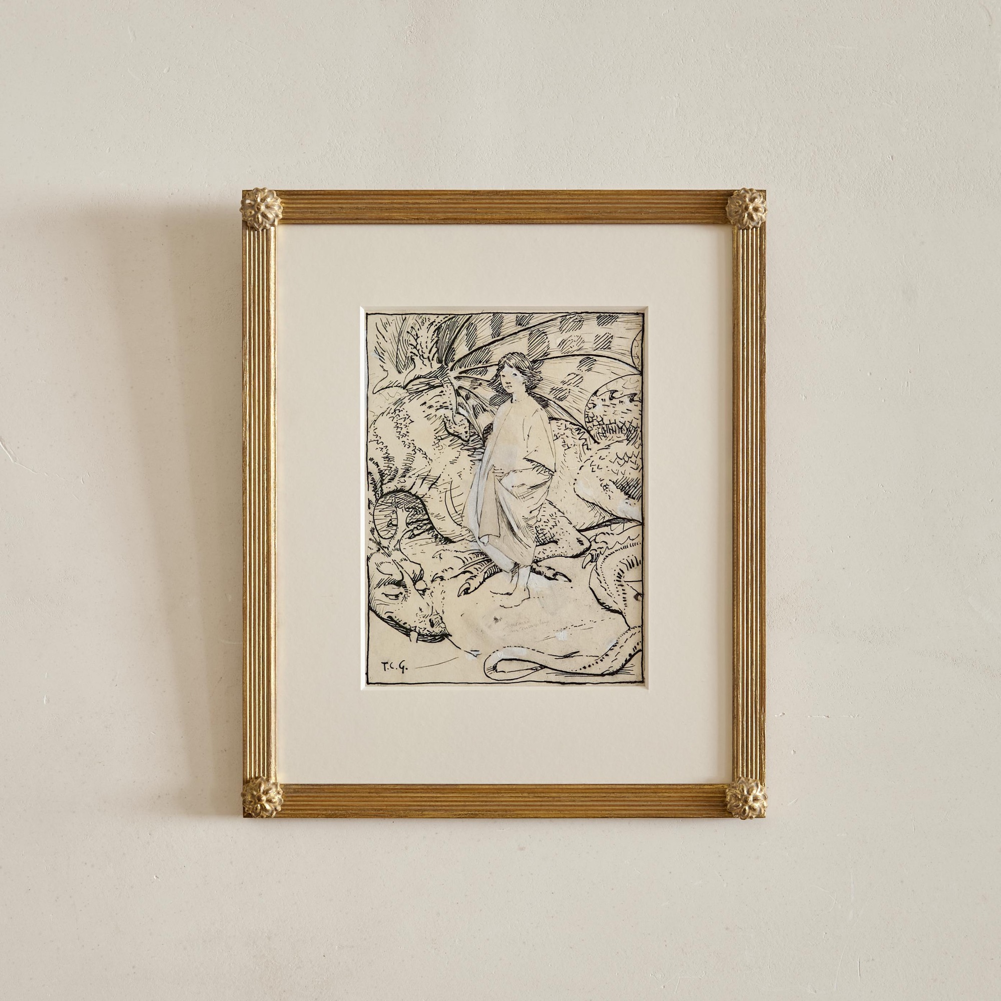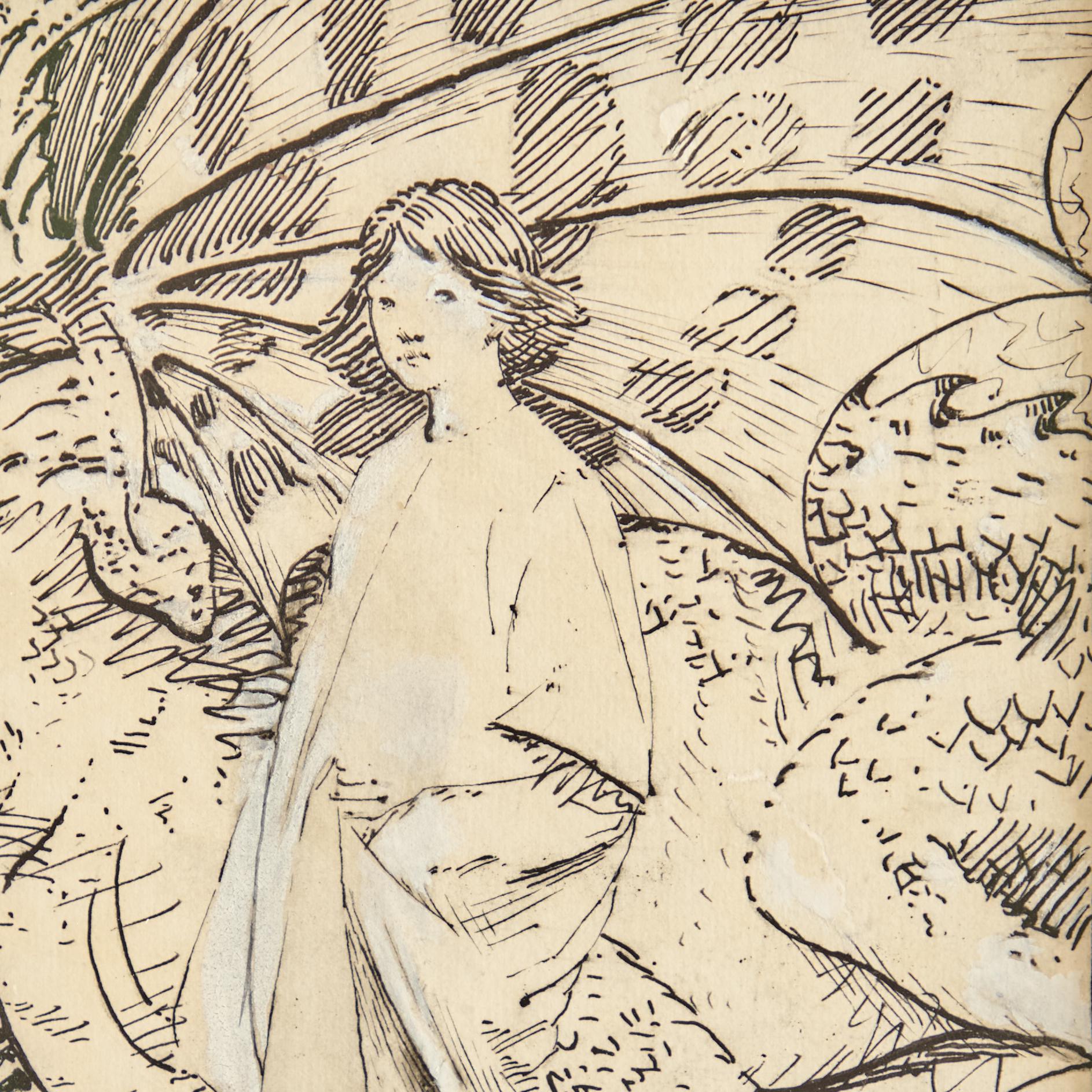 Sketch for 'Innocence' - pen and ink with gouache by Thomas Cooper Gotch (1854 - 1931)