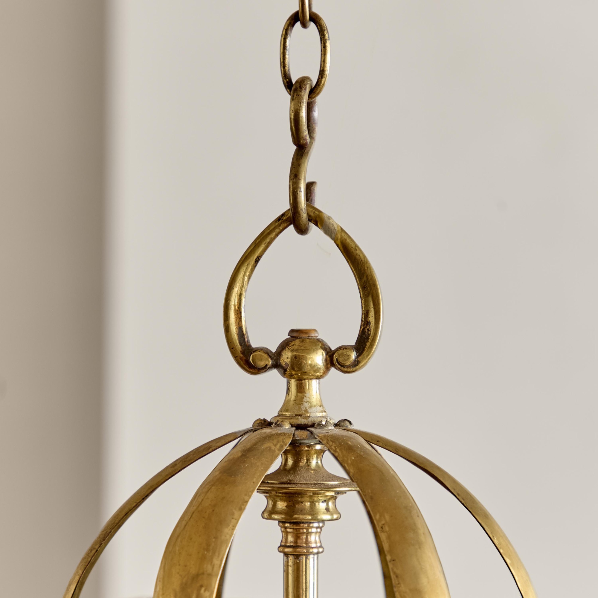 An Arts & Crafts brass hall lantern